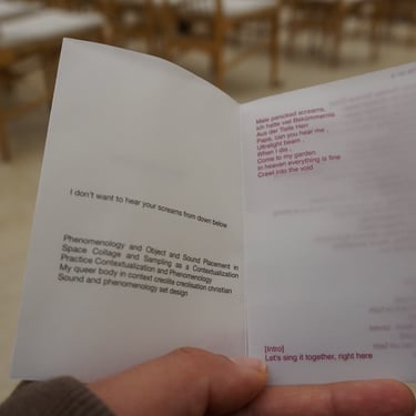 „I dont want to hear your screams from down below“is a direct quotation from my father. He strongly believes in a christianity that is -how he puts it- full of love but also will send me to hell for my transness/queerness. I am very much in conflict with that belief so in 2024 i started my research journey within the vast world of christianities. I have asked myself in the binar realms of good and bad where it is I might go. Heaven or Hell. I tried to find a logical space for me in a concept that is not about fact but belief, I wanted to find out if what my father believes is true maybe also If I believe it ?